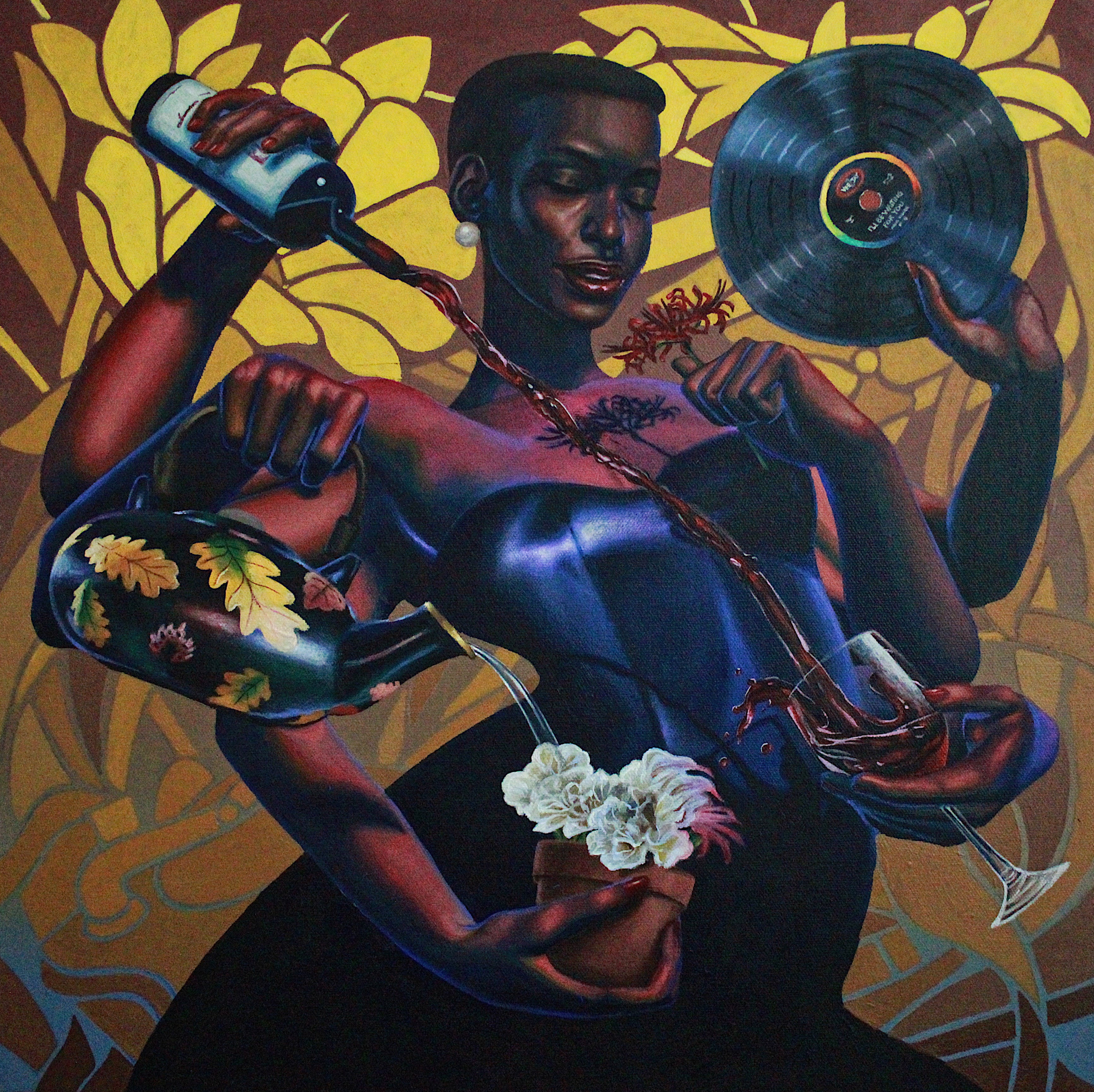 “A play on ‘RR: Rest & Relaxation,’ this artwork was created to offer a different, possibly more intentional, perspective in reaching the same goal of resting. The subject in the piece has developed a ritualistic practice that she can proudly rely on to reset. In that process, she ‘returns’ to her true self.