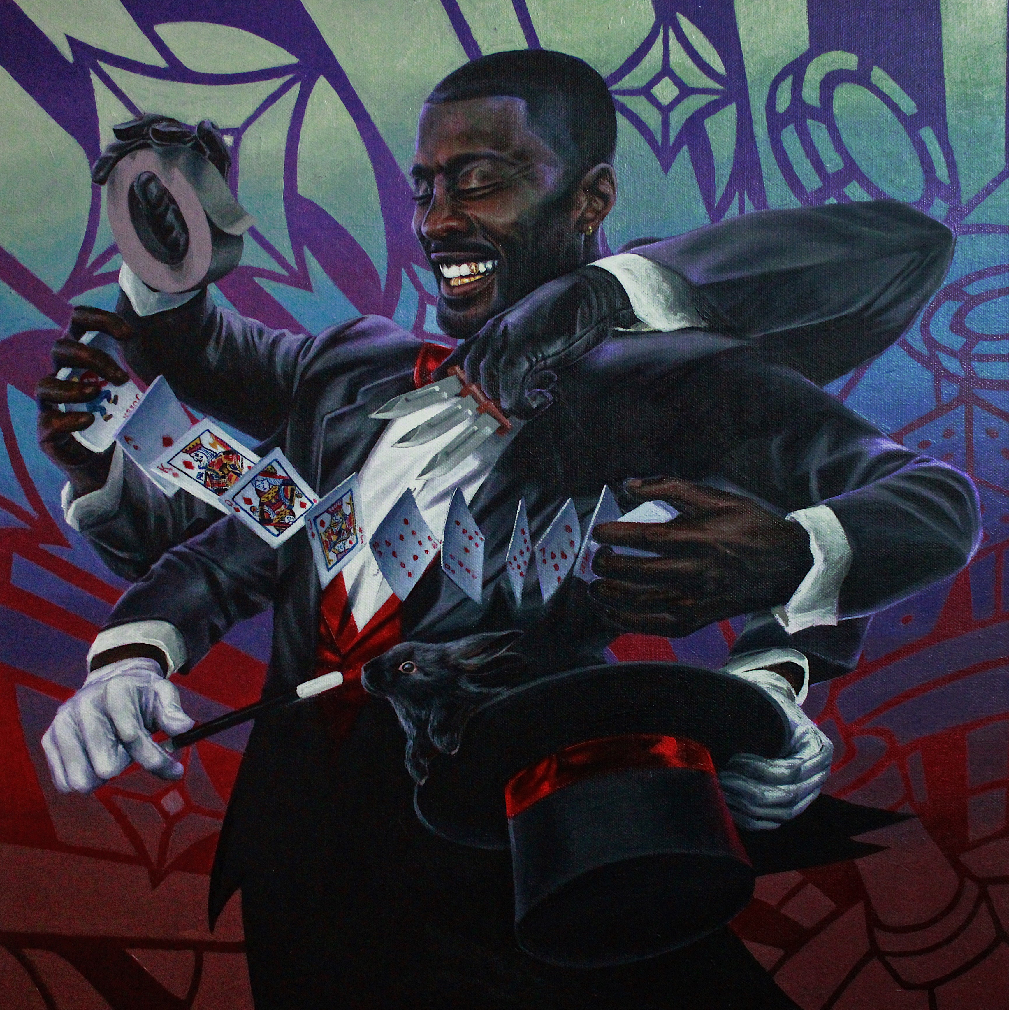 “An artwork created to illustrate the innate and immaculate ability of the black man to adapt and perform “magic” when facing any form of adversity. The main illustrative device used to show this is the changing of the gloves.”